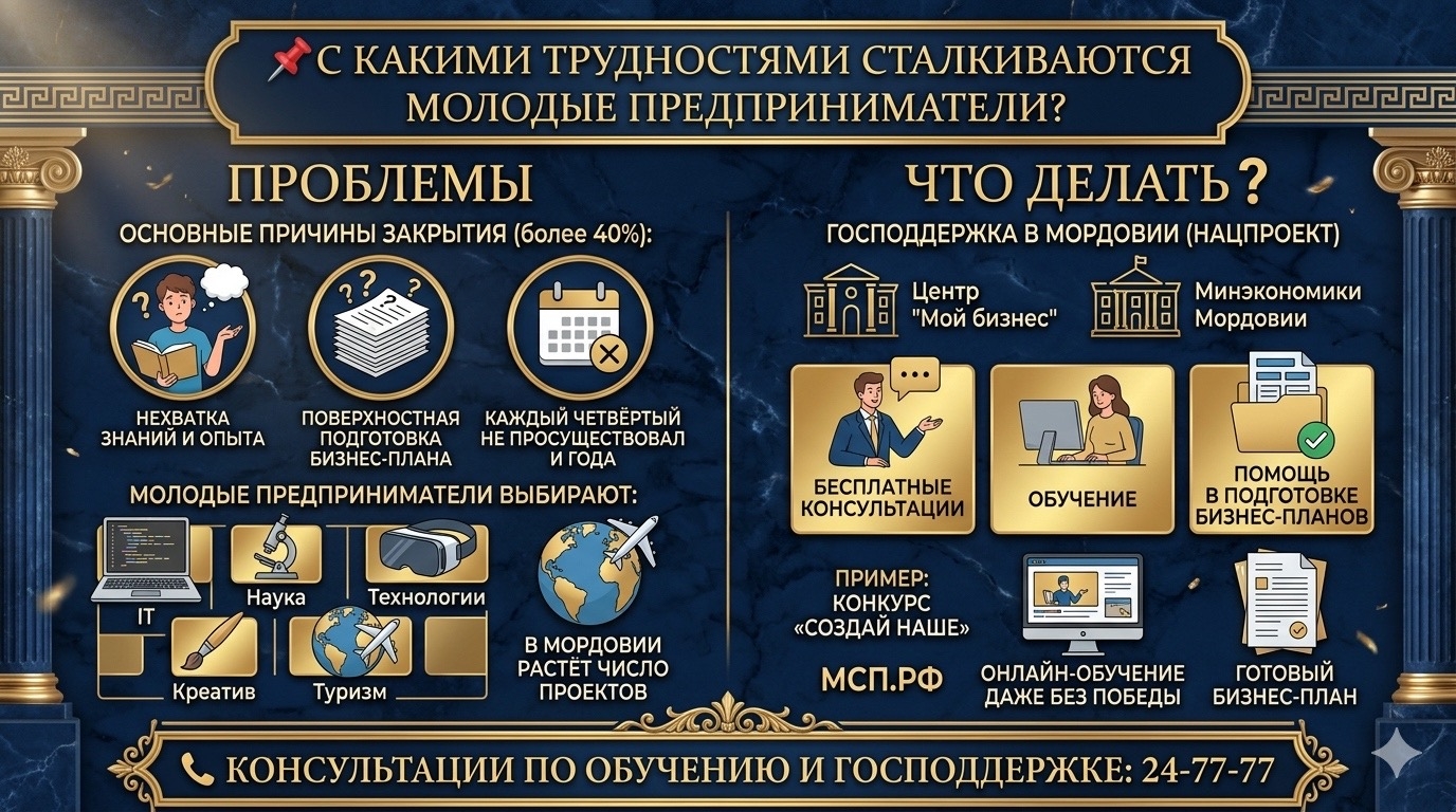 Министерство экономики, торговли и предпринимательства Республики Мордовия совместно с Центром «Мой бизнес» в рамках реализации национального проекта «Эффективная и конкурентная экономика» реализует комплекс мер, направленных на повышение предпринимательских компетенций и снижение рисков закрытия бизнеса на старте.
